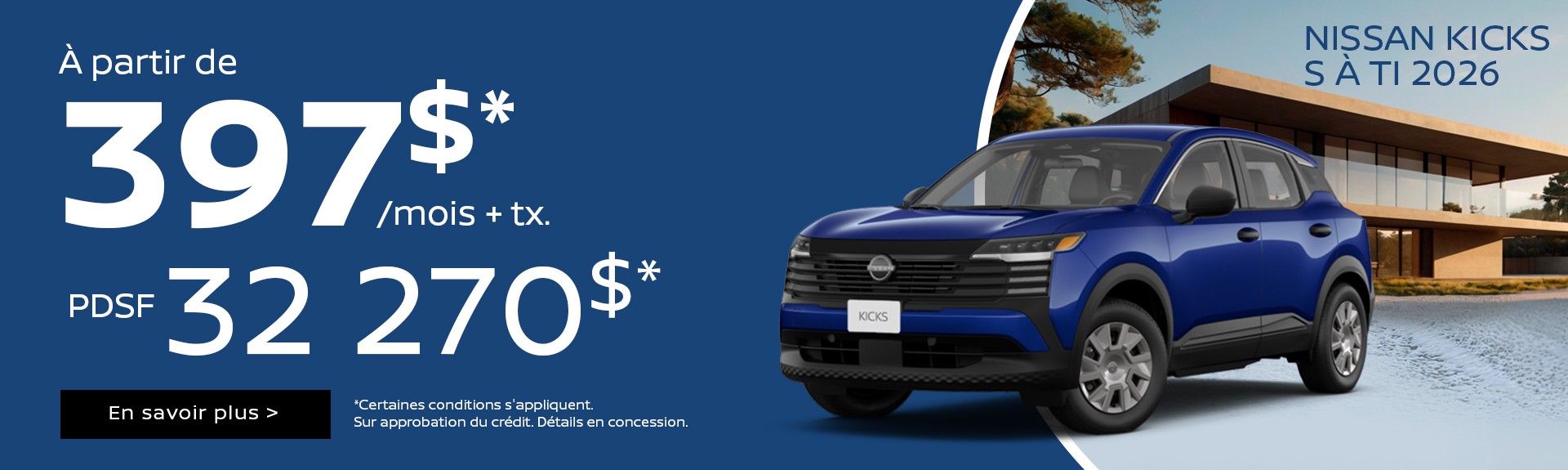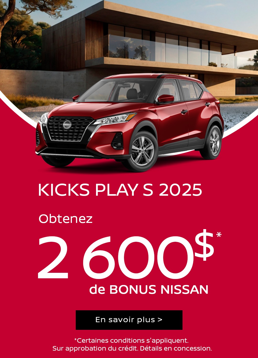 Pour ceux qui cherchent un petit format maniable avec toutes les qualités polyvalentes d’un VUS, le sous-compact Nissan Kicks 2024 est de retour avec son style et ses équipements résolument modernes. On grimpe ensuite dans la gamme avec :