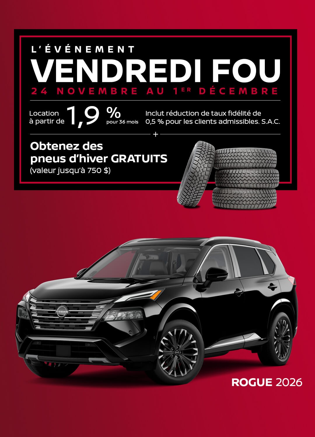 Combinez style, maniabilité et praticité avec le Nissan Kicks d’occasion ou découvrez l’espace confortable et le roulement tout en douceur d’un Nissan Rogue usagé.