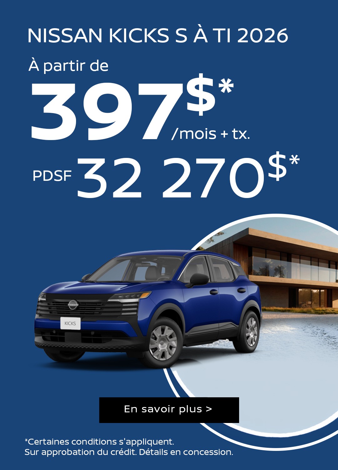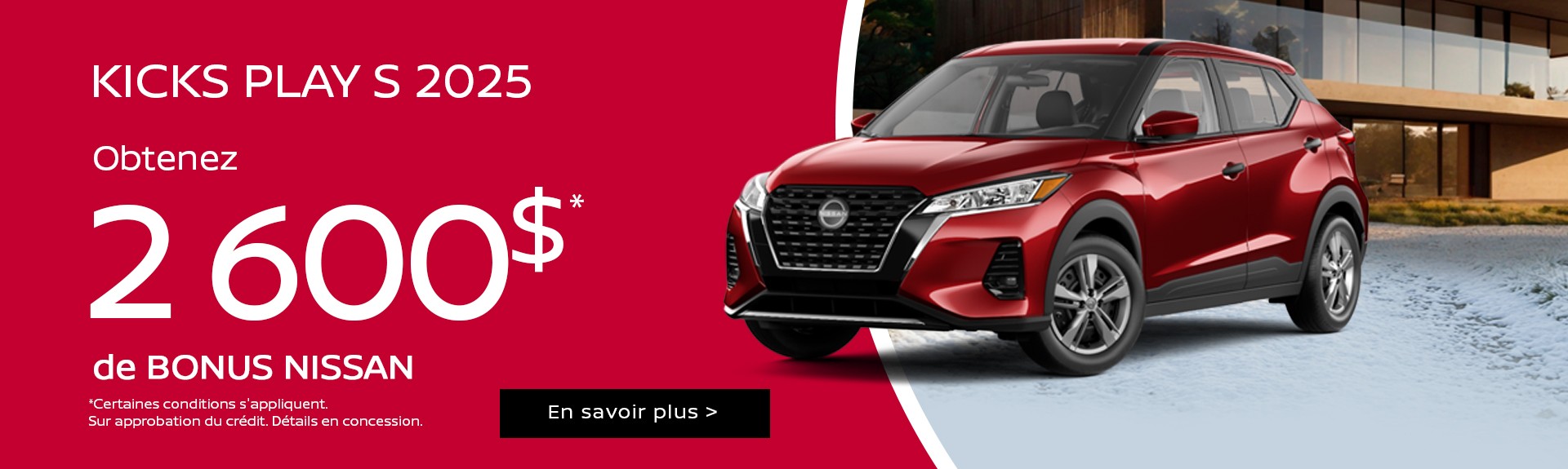 Pour ceux qui cherchent un petit format maniable avec toutes les qualités polyvalentes d’un VUS, le sous-compact Nissan Kicks 2024 est de retour avec son style et ses équipements résolument modernes. On grimpe ensuite dans la gamme avec :